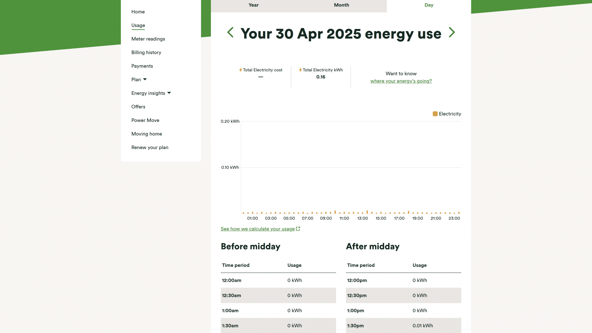 The short answer is yes. For the 1st and 2nd May, we paid £0.09 for our energy usage and £1.39 for the standing charge…