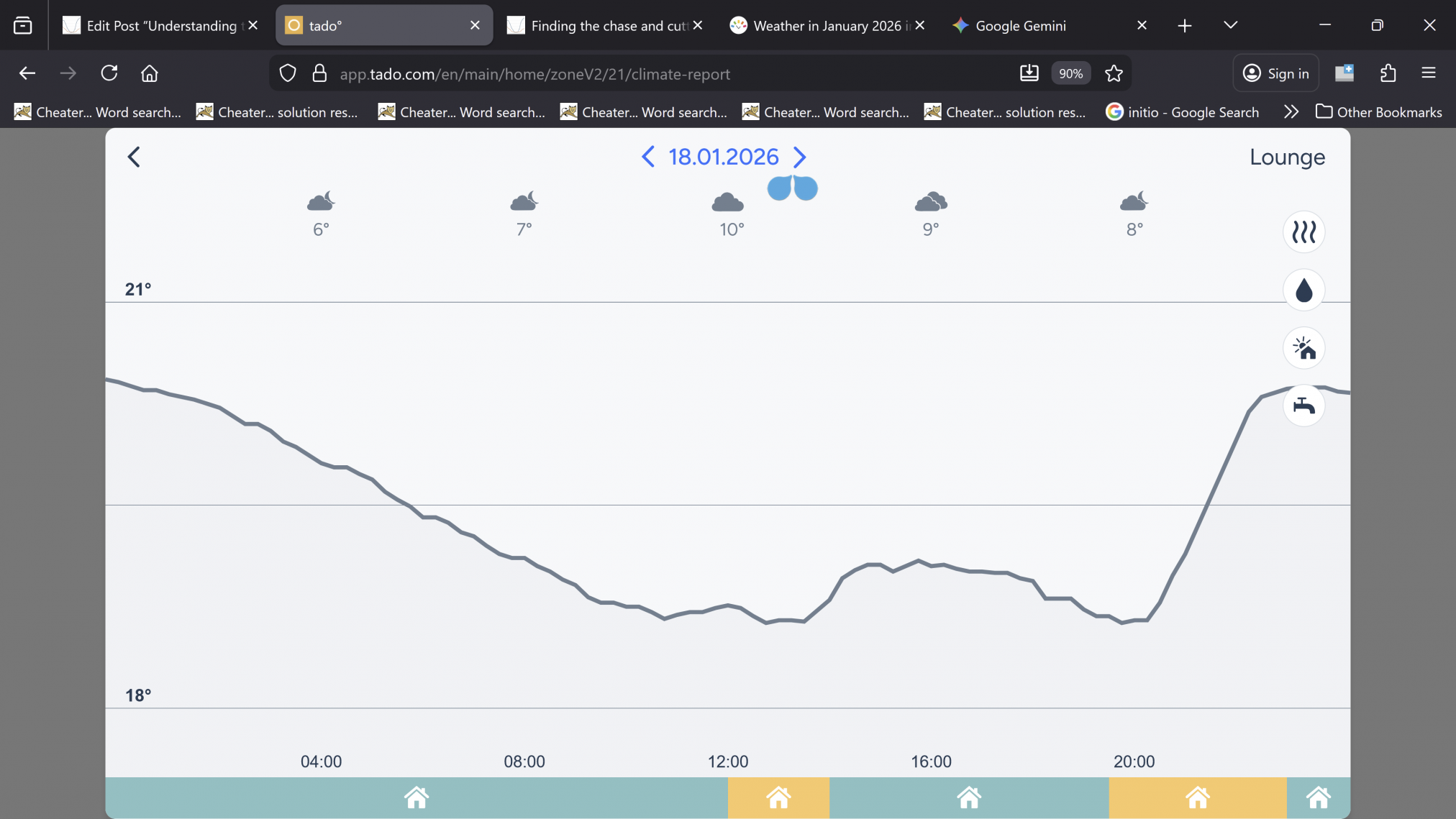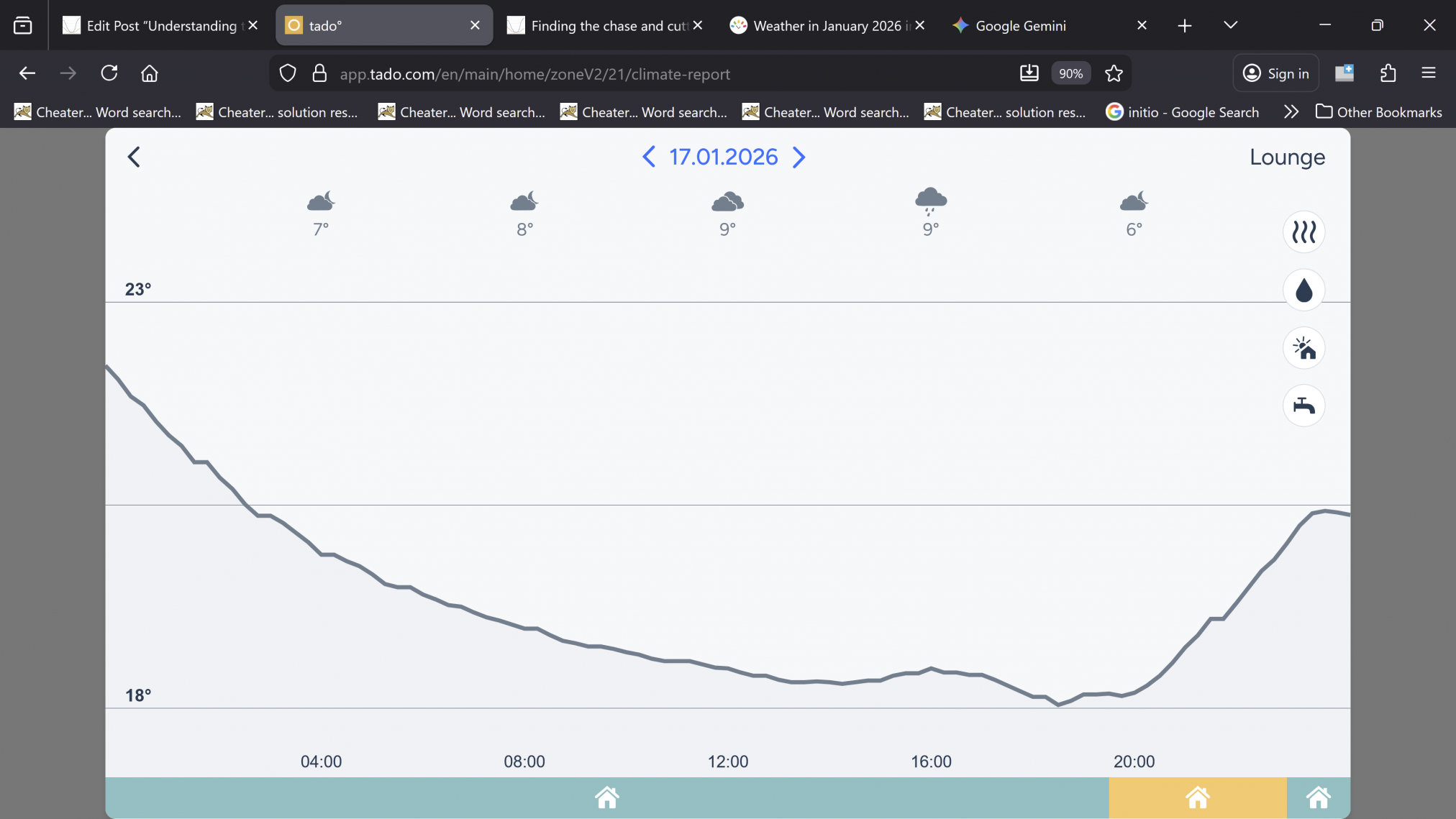The day before, means the next day is the 17th January 2026. Let’s look at our tado app and read off what happened.